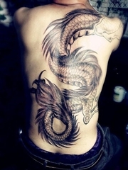 超霸气的大面积动物纹身龙和蛇和鱼纹身图案