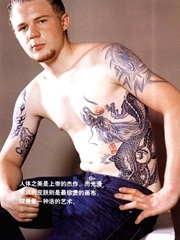 欧美男人胸膛中国古龙纹身图片