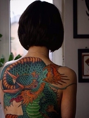 妖娆媚女背部火龙纹身图片