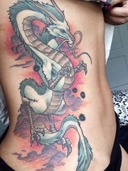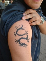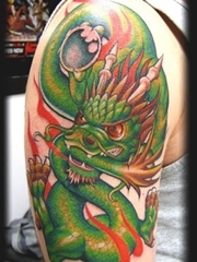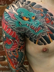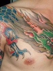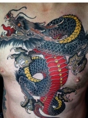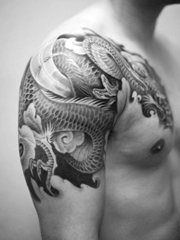 街头欧美纹身男子帅气的花臂满背龙纹身图案