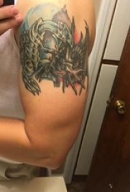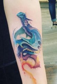 彩色纹身 男生手臂上彩色的龙纹身图片