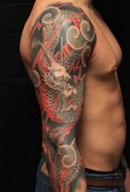 纹身龙 男生手臂上彩色纹身龙图片