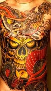 胸部霸气的嘎巴拉龙纹身图案