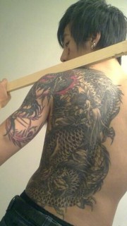 男性满背花哨霸气龙图案