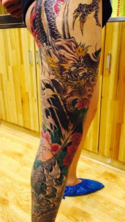 经典霸气龙花腿纹身图案