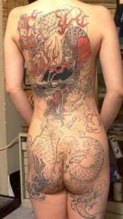大胆美女全身龙纹身图案