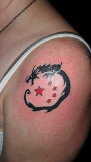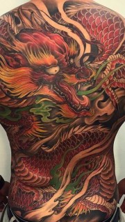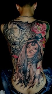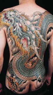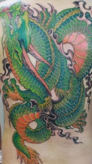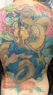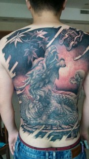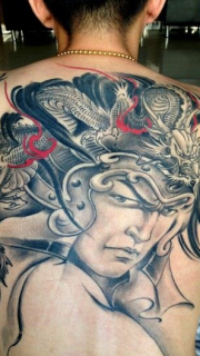 满后背的鹰抓蛇和手臂蜘蛛蜈蚣纹身