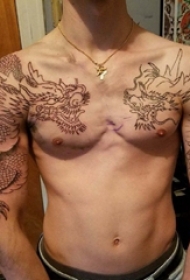 男生胸部黑色简单抽象线条小动物龙对称纹身图片