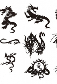 多款黑色线条素描经典霸气龙图腾纹身手稿