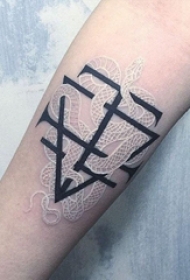 女生手臂上黑色线条几何元素白色线条霸气龙图腾纹身图片