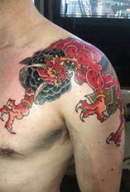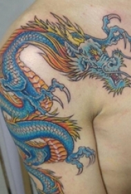男生肩膀上彩绘水彩素描创意霸气龙图腾纹身图片