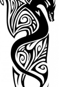 黑色线条素描创意霸气飞龙图腾纹身手稿