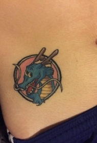 男生腹部彩绘几何简单线条卡通小动物龙纹身图片