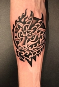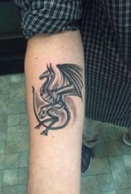 男生手臂上黑色点刺简单线条小动物飞龙纹身图片