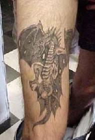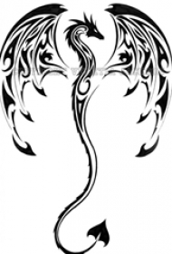 霸气的黑色几何线条小动物飞龙纹身手稿