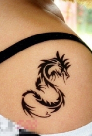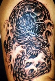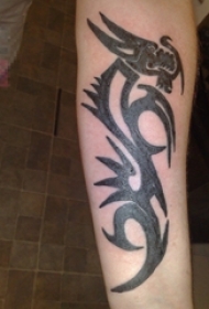 男生手臂上黑色线条创意霸气龙图腾纹身图片