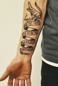 男生手臂上黑色线条素描创意龙图腾纹身图片