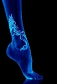 女生脚踝上白色抽象线条动物龙隐形纹身图片