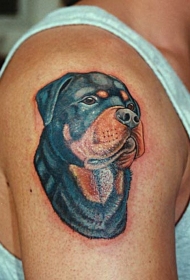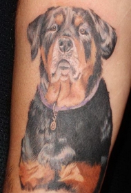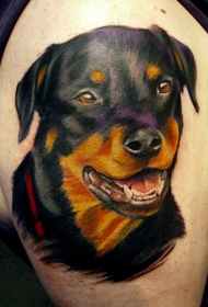 手臂甜蜜多彩的罗威纳犬头像纹身图案