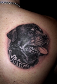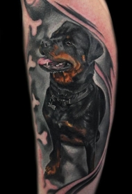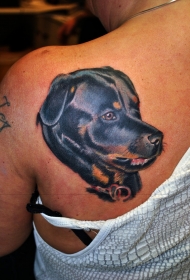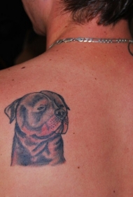 背部可爱逼真的彩色墨罗威纳犬纹身图案
