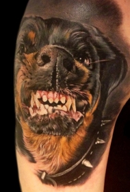 红眼的罗威纳犬皮肤撕裂纹身图案