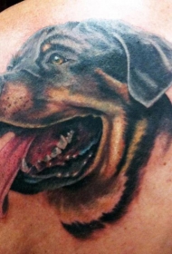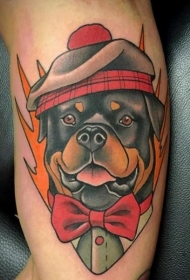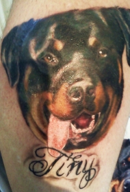 手臂可爱多彩的罗威纳犬和舌头纹身图案