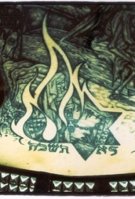 背部犹太风格火焰星星纹身图案
