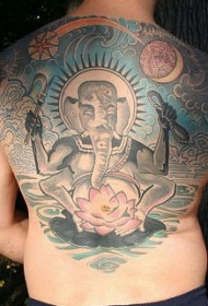 满背象神伽内什与莲花纹身图案
