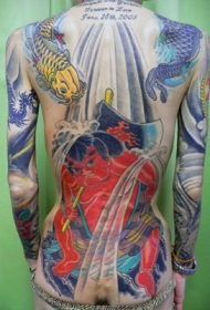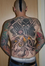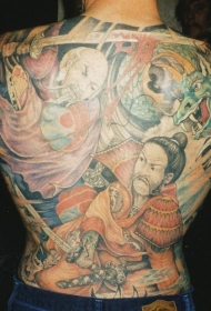 满背日本武士与龙彩绘纹身图案
