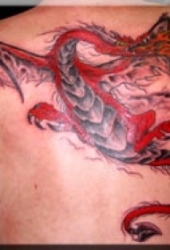 满背彩色的飞翔龙纹身图案