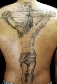 背部耶稣被钉死在十字架纹身图案