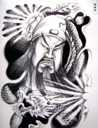 经典的关公满背纹身手稿