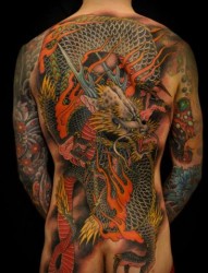 纹身520图库推荐一组满背神话里面的吉祥物,龙的纹身图案