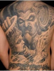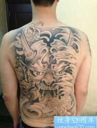 满背黑白色的夜叉鬼纹身图片