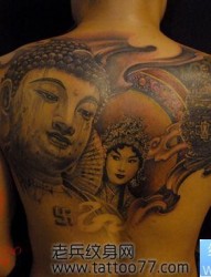 背部经典帅气的佛头花旦纹身图片