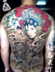 男生后背漂亮的满背花旦纹身图片