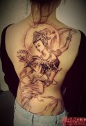 满背敦煌飞天仙女霸气纹身作品