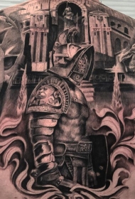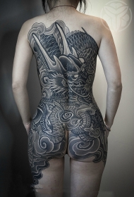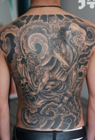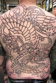 男生满背彩绘几何元素抽象线条人物肖像纹身图片