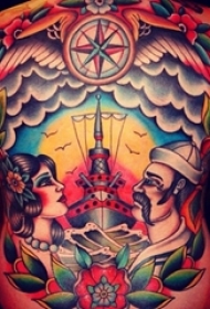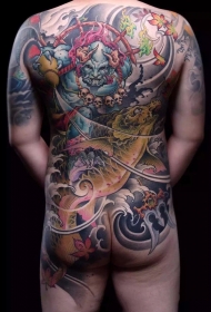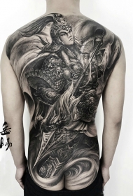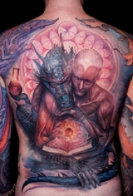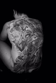 男生满背彩绘点刺技巧植物素材人物肖像纹身图片