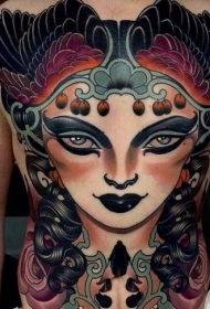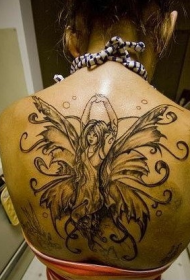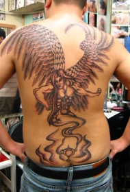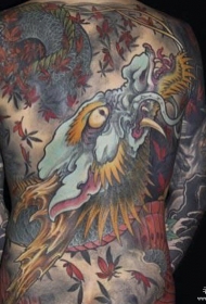 个性女子满背漂亮的孔雀彩绘纹身图案
