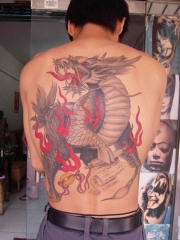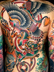 满背old school龙蛇鹰大战纹身图案