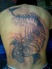 满背地下城骨架鱼纹身图案