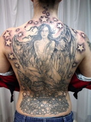 个性十足的满背天使星星纹身图案