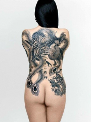 女性满背彩绘凤凰纹身图案