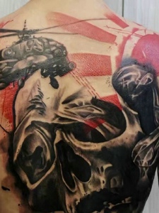 男子背上漂亮的吊坠和猫头鹰纹身图片