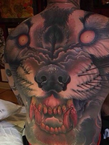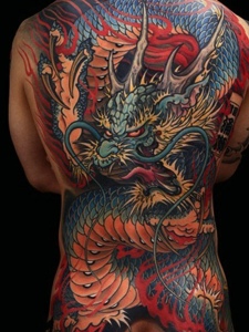 相当狂野的满背彩色大邪龙纹身刺青