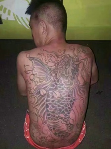 满背简陋的大鲤鱼纹身图案