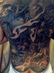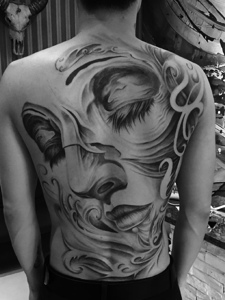 满背黑白日式大般若纹身图案