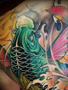 满背彩色大鲤鱼纹身图案狂野十足