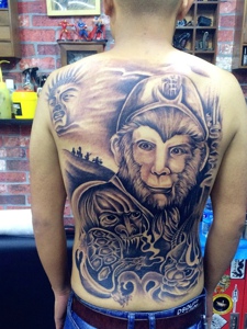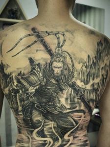 满背经典的西游记大师兄纹身图案
